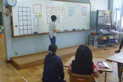 みんな真剣に漢字の 音読み・訓読み そして書き順を覚えています。