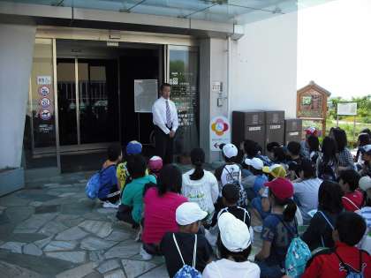 北淡震災記念公園へ行きました。はじめに職員の方に阪神淡路大震災のときの様子や住民の助け合いや協力の大切さ,自分のからだを自分で守ることなどを教えていただきました。その後,野島断層保存館を見学しました。