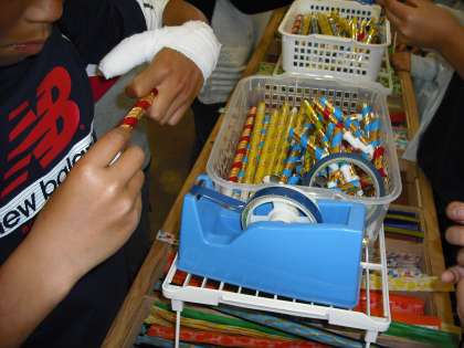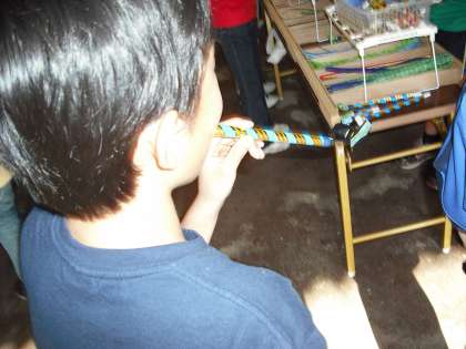 子どもは,夢中になって一人6個ずつの吹き戻しを作っていました。つくった作品を友だちと見せ合い,ふきあっていました。