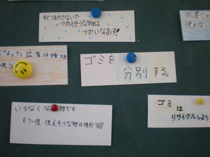 標語も考えて,家族や友達にも呼びかけるようなものもできました。