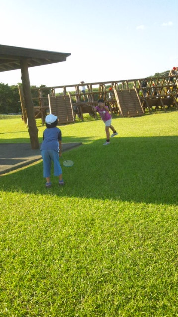 ひろーい芝生で思いきりあそんでいます。気持ちいい