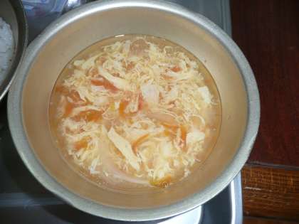 トマトと卵のスープは,さっぱりした酸味のあるスープです。トマトが苦手な子どもも喜んで食べています。