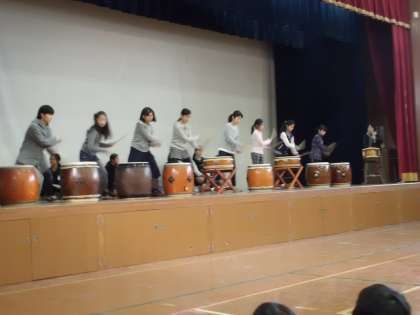 今日の昼休みに音楽クラブのみんなが太鼓の演奏を披露してくれました。体育館はクラブのみんなの勇壮な演奏の音が響き渡り,春からこつこつ練習してきた成果を発揮していました。