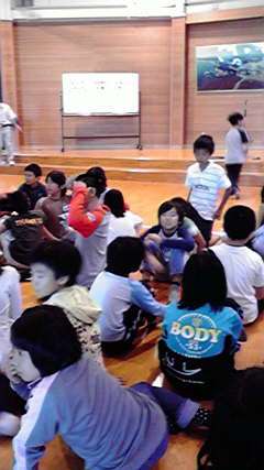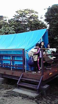 テントとプレーホールでの様子です.今日の午前中は,宮崎浜へ行って磯観察をします.
