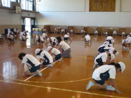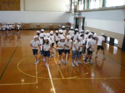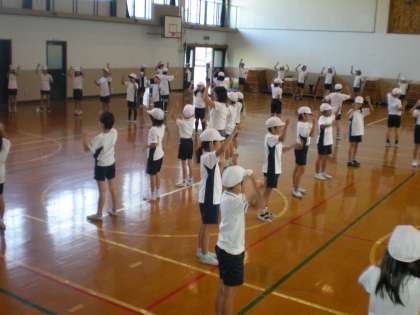4年生の団体演技,今年のテーマは「絆」です。友達と力を合わせて,かっこいい4年生の姿を見せたいと張り切っています。