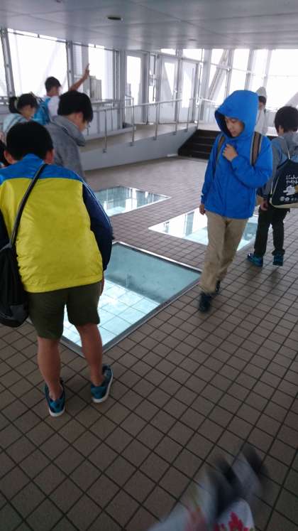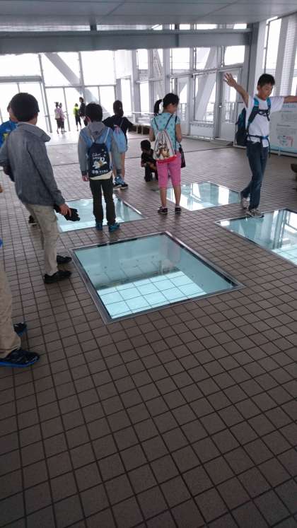 渦の道に出かけた様子です。たかーい。こわいけど、すごい。強い風も思い出です。