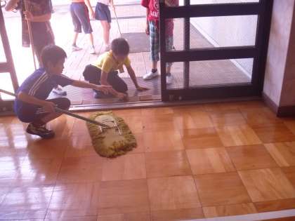 階段掃除が終わると,どんどん気づいて,ぐんぐんきれいにしています。