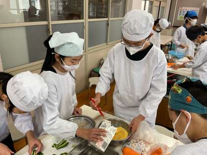 自分たちで買った食材を使って、調理実習を行いました。5年生から学習してきたことをいかし、2年間の集大成として楽しく活動していました。