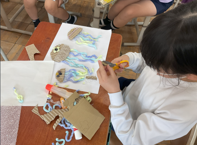3年生の図画工作科の学習で、材料を組み合わせて版を作りました。子どもたちはたくさんの材料を工夫しながら重ね合わせていました。これから作成した版を使い、色遣いを工夫しながら楽しい版画を作っていきます。