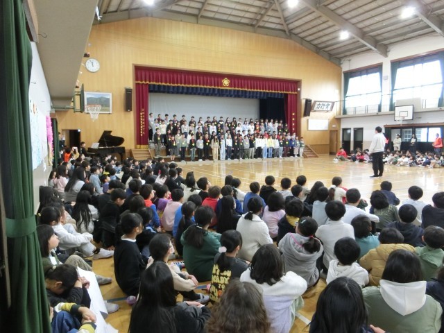 全校のみんなで合唱したあとは、6年生の発表がありました。後輩たちに向けて温かいメッセージを送ったあとには、6年生のすばらしい合唱の発表があり、歌が終わった後も、全校児童は誰一人言葉を発することなく、しばらく感動と余韻にひたっていました。