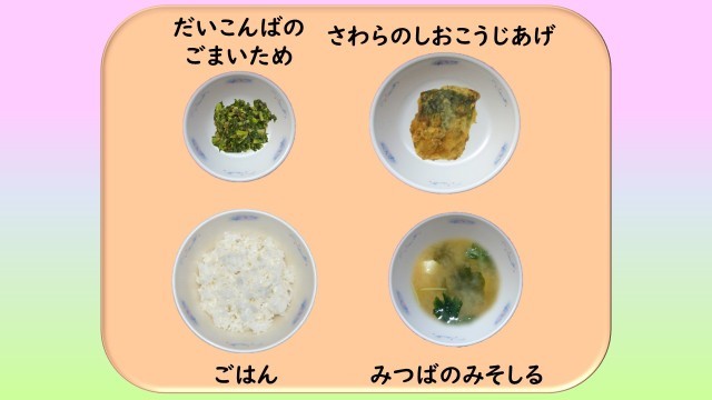 ・さわらの塩こうじあげは、サクサクしたところが本当に好きです。サクサクの衣をみんながおかわりしたいと思っています。私もおかわりしました。これからもおいしい給食をお願いします。(3年)
