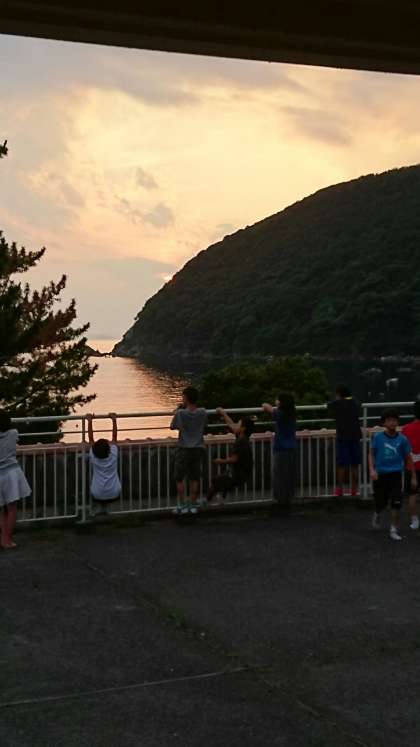 子ども達が「先生!早く来て!!」と言うのでベランダに出てみると、ちょうど夕日が沈む瞬間でした。