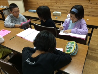 山の家での最後のご飯を食べ,ふり返りをしています。この後,退所式をして13時30分頃,学校に向けて出発します。予定よりも30分早くなっています。