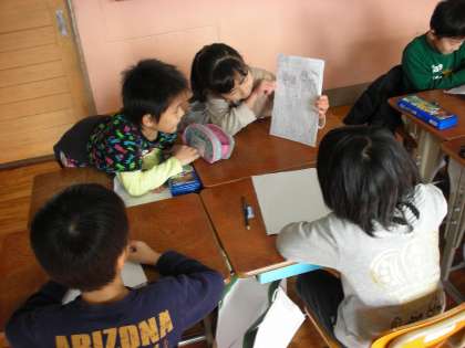 冬休みの宿題でもあった絵日記の交流会をしました。