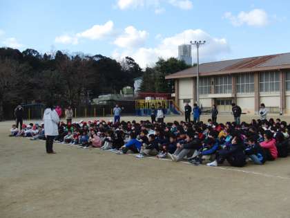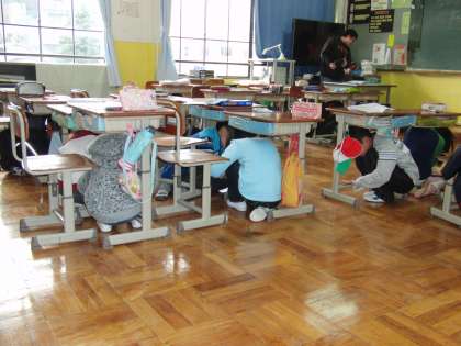 地震発生で第一次避難,火災発生で第二次避難と,それぞれでの身の守り方について学びました。みんな真剣な表情で,「お(おさない)・は(はしらない)・し(しゃべらない)・も(もどらない)・て(低学年優先)」をしっかり守って行動できました。