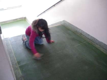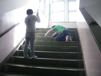 廊下や階段をきれいにするため,冬休み明けからぞうきんがけをしています。