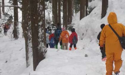 すごい雪の中を歩いています。みんな諦めることなく頑張りました。