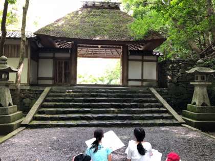 6年生は法然院へ写生に行きました。自然の豊かさや歴史を感じさせる門の奥深さを感じながら描きました。細かいところも観察しながら集中して取り組むことができました。