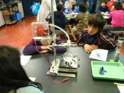 とても意欲的に,そして興味をもって,青少年科学センターの先生の話をしっかりと