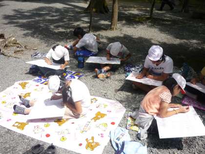 昨日までの天気と打って変わって快晴の中,気持ちよく絵を描くことができました。