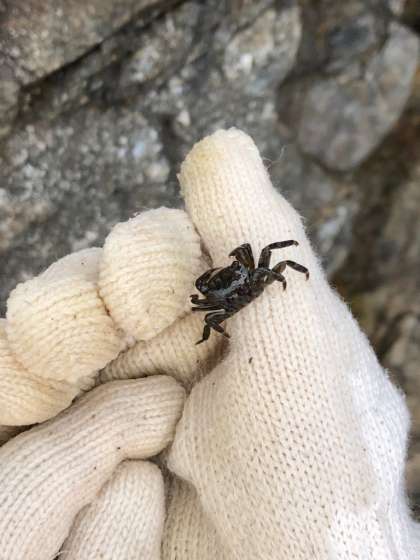 海の生き物を求めて磯観察です。みんな小さな隙間も見逃さず,必死に探しています!