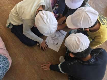 スコアオリエンテーリングに向かいます。ただ今,作戦会議中!!