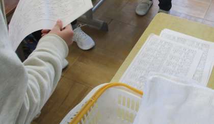 6年生です。たくさんの提出物を一つ一つ丁寧に集めています。新型コロナウイルス感染拡大防止のため,自分の健康管理のため検温など健康観察が日常的なルーティンワークとなりました。大変ですが,忘れずに頑張ってください。