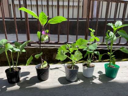 学校に,生かつかの学しゅうでそだてる やさいのなえが とどきました。