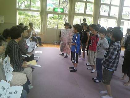 今夜お世話になります民泊先の皆さんと対面式を行いました。学校紹介をして歌を聞いていただきました。