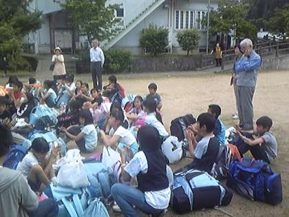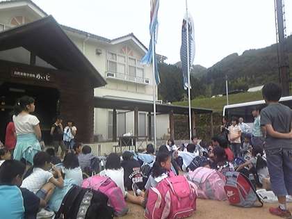 いよいよ4泊5日を過ごしたほたるの里ともお別れです。民泊先の方々も,見送りに来てくださっています。お世話になった方々にお礼を述べてバスに乗り込みました。