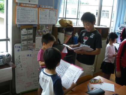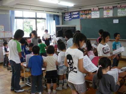 6年生の教室におじゃまして,一緒に歌を歌いました。