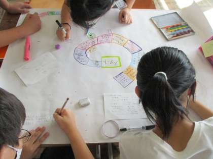 また,にこにこ遊びに向けてグループのみんなのことを知れる質問を入れたすごろくを作りました。グループのみんなの楽しそうな姿に6年生もやりがいと達成感を感じているようでした。