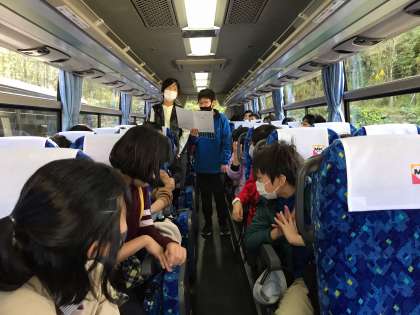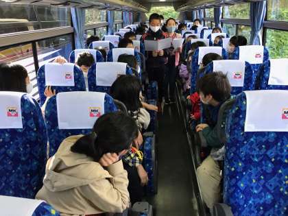 バスの中でホテルの方に挨拶をしました。そしてワンデイパスポートの説明を受けました。この後荷物置き場に移動です。