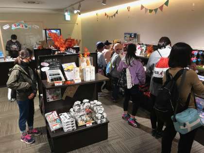 いつの間にか太陽も西の空に沈みかけています。時間が経つのがとても早いようです。少し早く帰った子供たちがお土産の下見をしています。