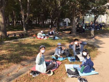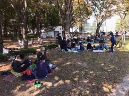 プラネタリウムを見終わって,科学館の前にある白川公園で昼食です。