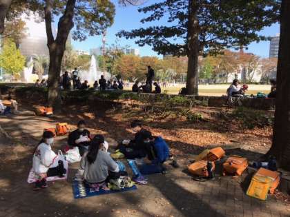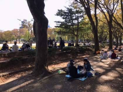 大変天気が良くて暑い位です。日陰でのんびり食べています。