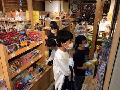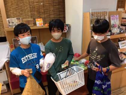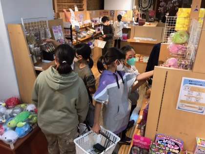 2つのグループに分かれて活動しています。楽しそうに買い物をしています。お風呂も写真はありませんが気持ちよさそうに入っていました。