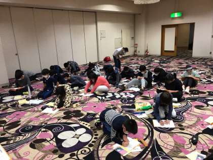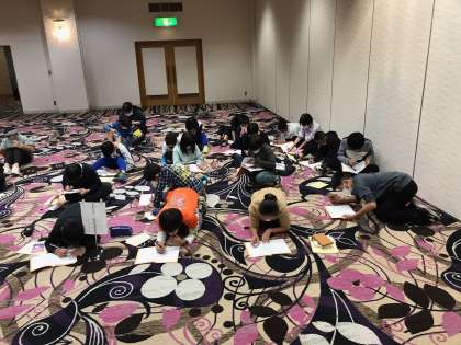 最後の活動です。今日の活動を振り返って反省会をしています。今日のホームページのアップロードは以上です。また明日、ご報告いたします。