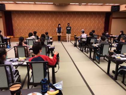 朝の会を終えて朝食タイムです。