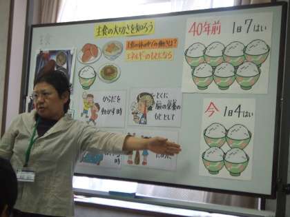 栄養教諭の澤島先生に,健康についてのお話をしていただき,頭の栄養も満点になりました。