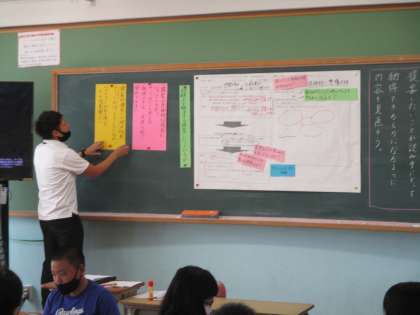「主体的に対話し思考を深める子どもの育成〜思考を支える基盤づくりを意識して〜」をテーマに今年度の国語研究がスタートしました。6年生が「三錦の現状やそれに対する考えをもとに,素敵な三錦提案書を書こう」ということで本時は「構成した内容について話し合い,提案したいことが読み手にとって納得できるものになるように,内容を見直そう。」というめあてで学習を展開しました。各自が,話し合いを通して,各自の提案書の内容を見直します。わかりやすく説得力のある提案文書になるようアドバイスをしあっています。今年度も京都女子大学の水戸部修治教授にご指導をいただきます。