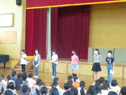 今週の月曜日に「にこにこ朝会」がありました。修学旅行明けでしたが、各委員長さんや代表委員さんを中心に頑張っていました。