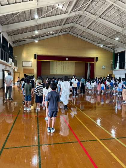 本日は「人権の日」ということで、朝から体育館に全校児童が集まってお話を聞きます。