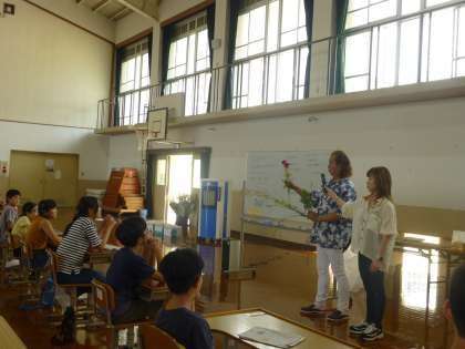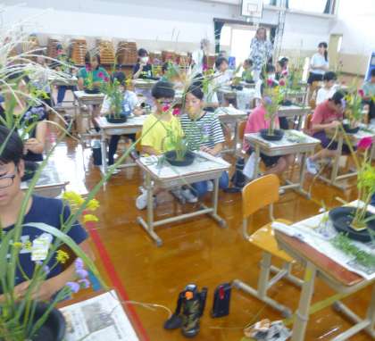 12日に華道教室がありました。はじめに花を生けるときに気を付けることなどを教えてもらい、実際に生けました。初めて花を生けた子どもがほとんどでしたが、素敵な作品に仕上がり、嬉しそうでした。