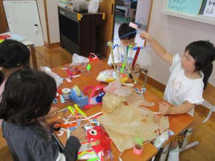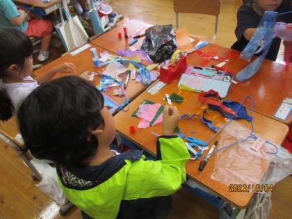 材料を組み合わせて作ったり、揺らしながら作ったりして、