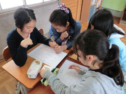 ヒントを見て,店の場所を考えていくというグループでの協力が必要なゲームでした。担任が見ていて思っていたよりも早くお店の場所を決めることが出来,驚きました。