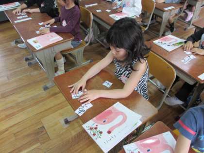 「あいうえお」の5つの文字を組み合わせて,いろいろな言葉を作りました。