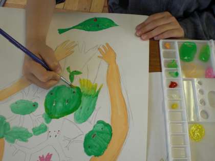 図工で,ポスターに取り組んでいます。4年生は環境問題について学ぶふれあい学習と関わって,緑化運動のポスターを描きます。環境・緑について資料で学習した後,おもいおもいのイメージをスケッチしました。そしてこれからそれをポスターに表現します。一人ひとり真剣に取り組む姿から,思いのこもった作品になりそうです。