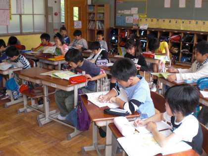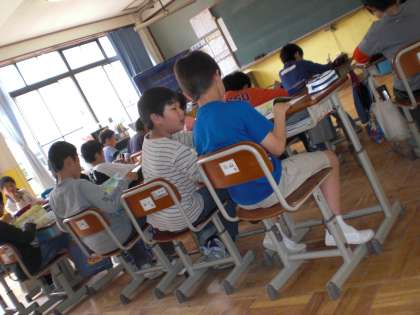 ふだん社会科を担当してくださっている先生が,修学旅行の引率に出かけられました。4年生は,あらかじめ先生から課題が出ていました。自習の様子を見にに行きましたが,やるべきことを理解していて,アドバイスの必要がありませんでした。黙々と取り組む姿,小さな声で近くの友だちと話し合いながら学習する姿。頼もしい姿が見られました。