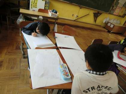 今日は,図工の時間に「緑化ポスター」を描きました。